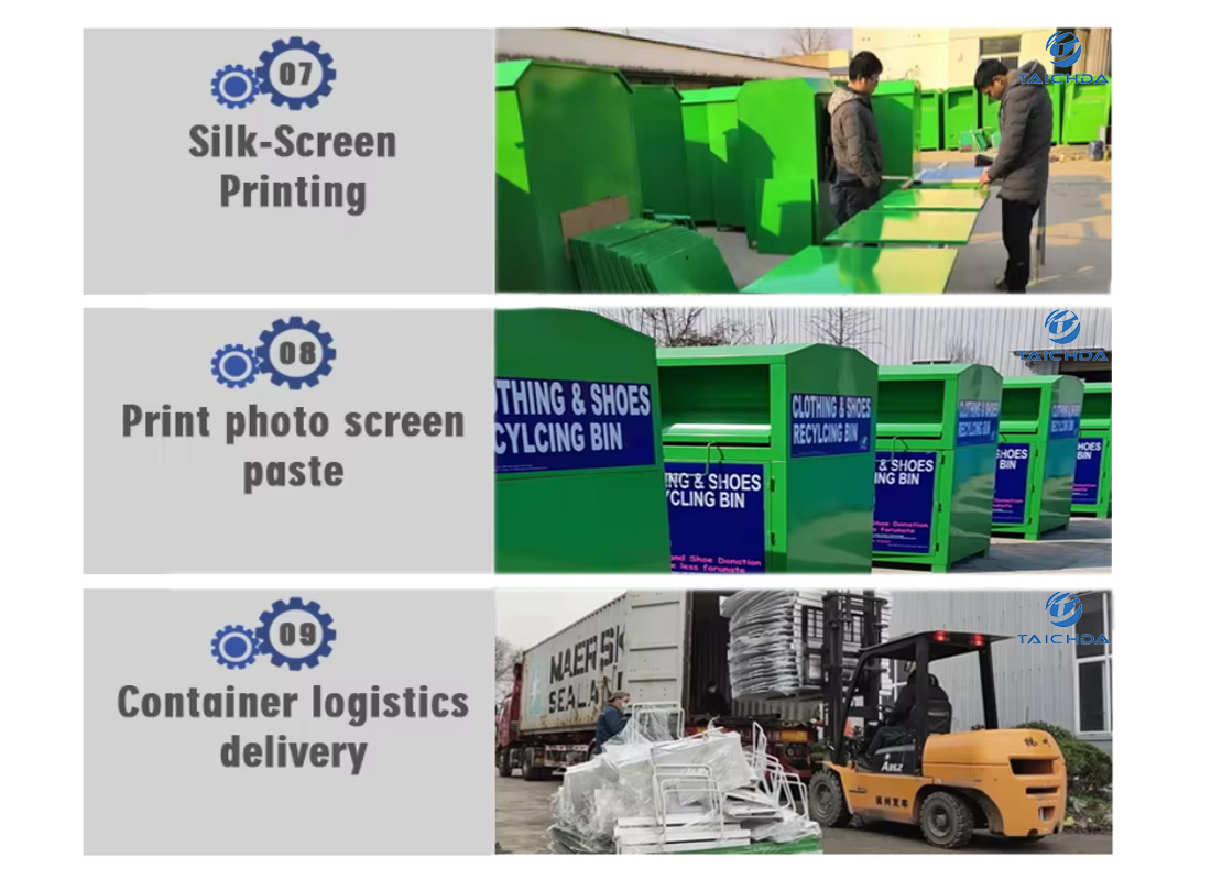 We“Zhangzhou Taichengda Metal Products Co., Ltd.” are a sheet metal processing manufacturer. We have rich experience in product production and strong R&D customization capabilities. We manufacture and customize various specifications and sizes of textile recycling boxes and environmentally friendly donation boxes according to customer needs.