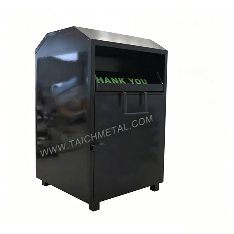 We“Zhangzhou Taichengda Metal Products Co., Ltd.” are a sheet metal processing manufacturer. We have rich experience in product production and strong R&D customization capabilities. We manufacture and customize various specifications and sizes of textile recycling boxes and environmentally friendly donation boxes according to customer needs.